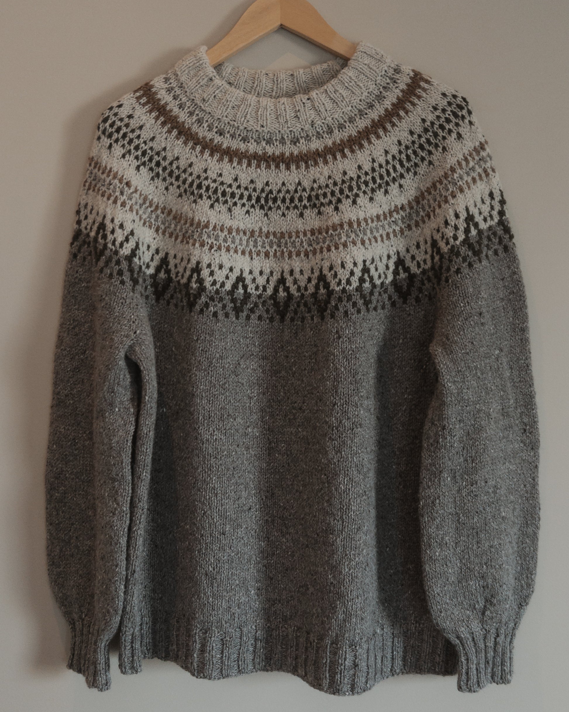 Genseren strikkes ovenfra og ned, i et mosaikkmønster som gir både dybde og ro.